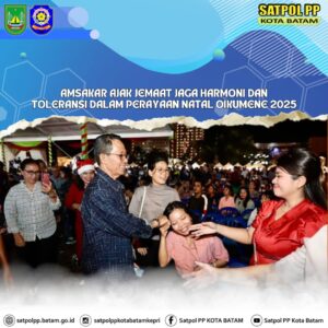 Wali Kota Batam, Amsakar Achmad, mengajak seluruh jemaat untuk terus menjaga harmoni dan toleransi antarsesama saat menghadiri Perayaan Natal Oikumene Tingkat Kota Batam Tahun 2025 di Dataran Engku Putri, Batamcentre, Senin (29/12/2025) malam.