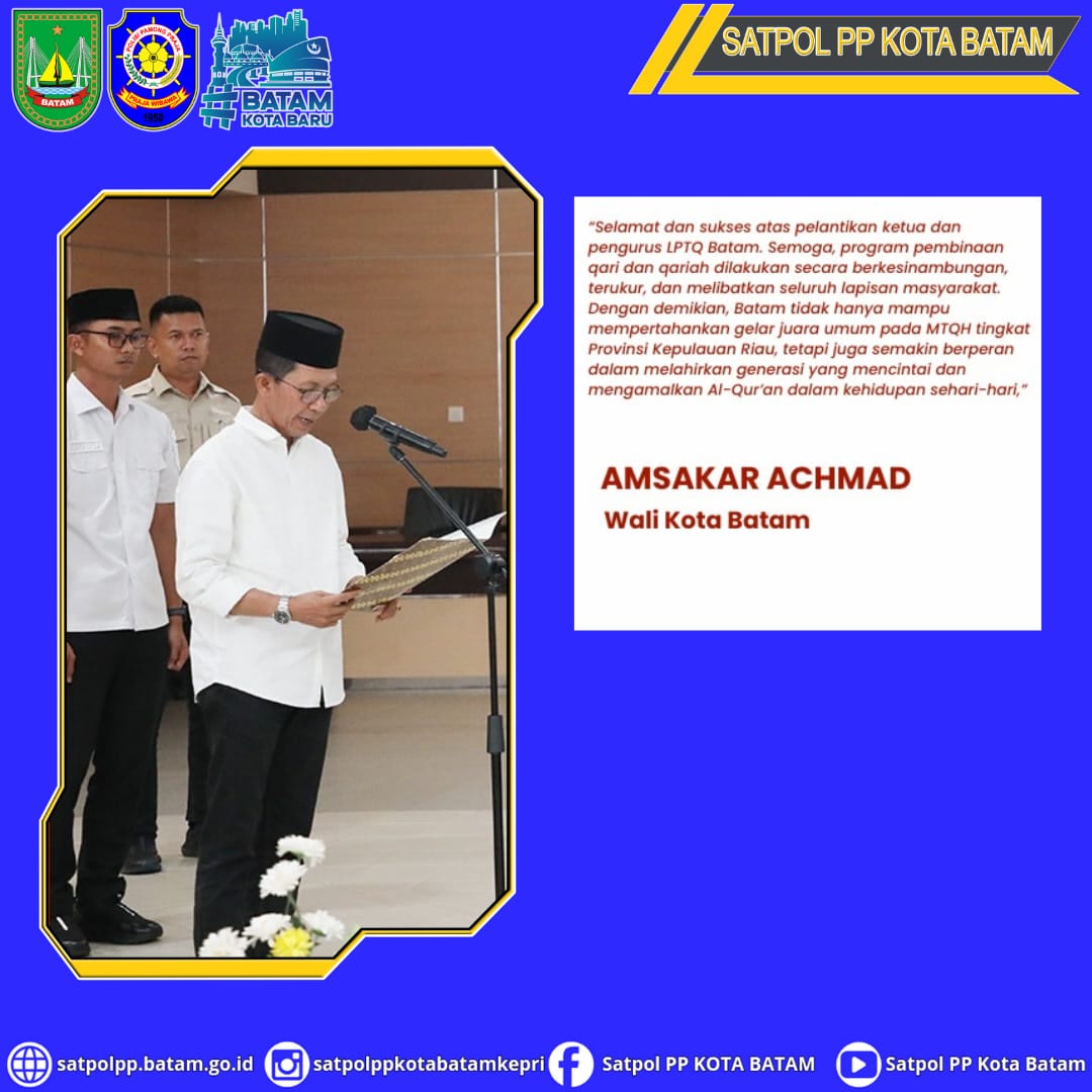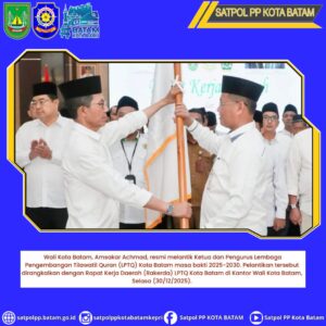 Wali Kota Batam, Amsakar Achmad, resmi melantik Ketua dan Pengurus Lembaga Pengembangan Tilawatil Quran (LPTQ) Kota Batam masa bakti 2025-2030. Pelantikan tersebut dirangkaikan dengan Rapat Kerja Daerah (Rakerda) LPTQ Kota Batam di Kantor Wali Kota Batam, Selasa (30/12/2025).
