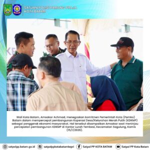 Wali Kota Batam, Amsakar Achmad, menegaskan komitmen Pemerintah Kota (Pemko) Batam dalam mempercepat pembangunan Koperasi Desa/Kelurahan Merah Putih (KDKMP) sebagai penggerak ekonomi masyarakat.