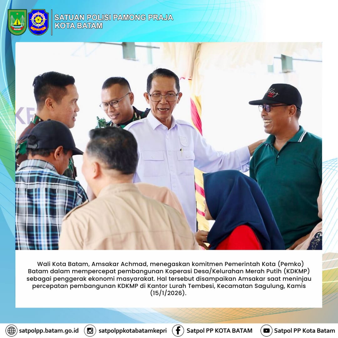 Hal tersebut disampaikan Amsakar saat meninjau percepatan pembangunan KDKMP di Kantor Lurah Tembesi, Kecamatan Sagulung, Kamis (15/1/2026). Peninjauan tersebut turut dihadiri Panglima Komando Daerah Militer (Pangdam) XIX/Tuanku Tambusai, Mayjen Agus Hadi Waluyo.