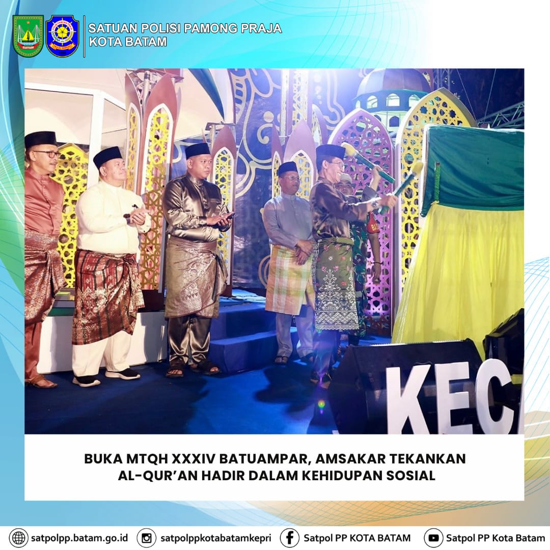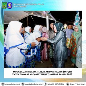 Wali Kota Batam, Amsakar Achmad, didampingi Ketua TP PKK Kota Batam, Erlita Amsakar, secara resmi membuka Musabaqah Tilawatil Qur’an dan Hadits (MTQH) XXXIV Tingkat Kecamatan Batuampar Tahun 2026 di halaman Masjid Miftahul Jannah, Kamis (5/2/2026) malam.