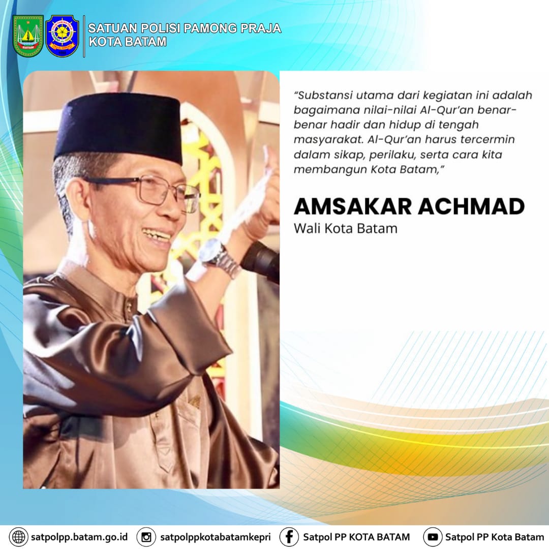 “Substansi utama dari kegiatan ini adalah bagaimana nilai-nilai Al-Qur’an benar-benar hadir dan hidup di tengah masyarakat. Al-Qur’an harus tercermin dalam sikap, perilaku, serta cara kita membangun Kota Batam,” ujar Amsakar.