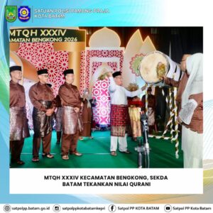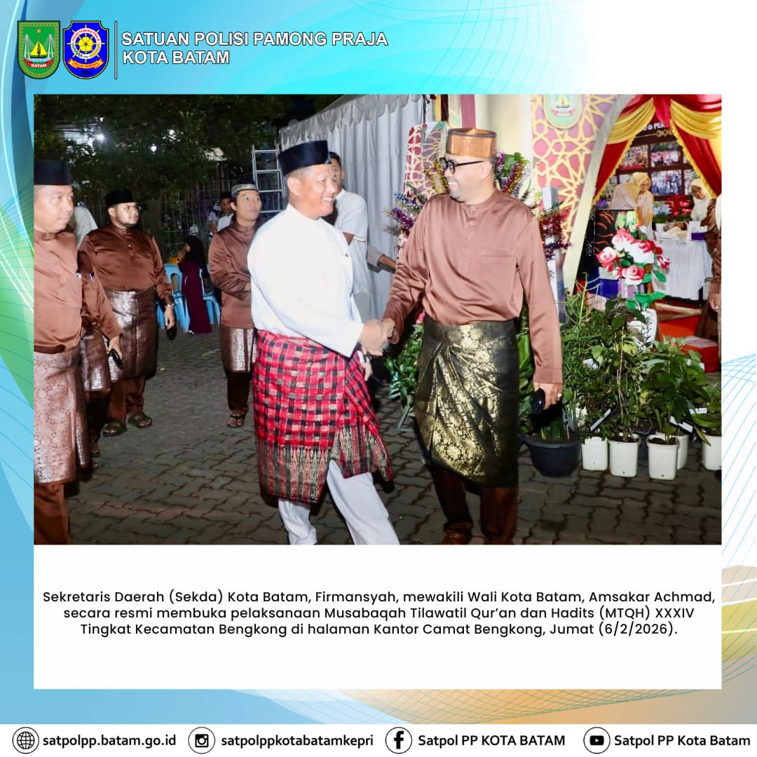 Sekretaris Daerah (Sekda) Kota Batam, Firmansyah, mewakili Wali Kota Batam, Amsakar Achmad, secara resmi membuka pelaksanaan Musabaqah Tilawatil Qur’an dan Hadits (MTQH) XXXIV Tingkat Kecamatan Bengkong di halaman Kantor Camat Bengkong, Jumat (6/2/2026).