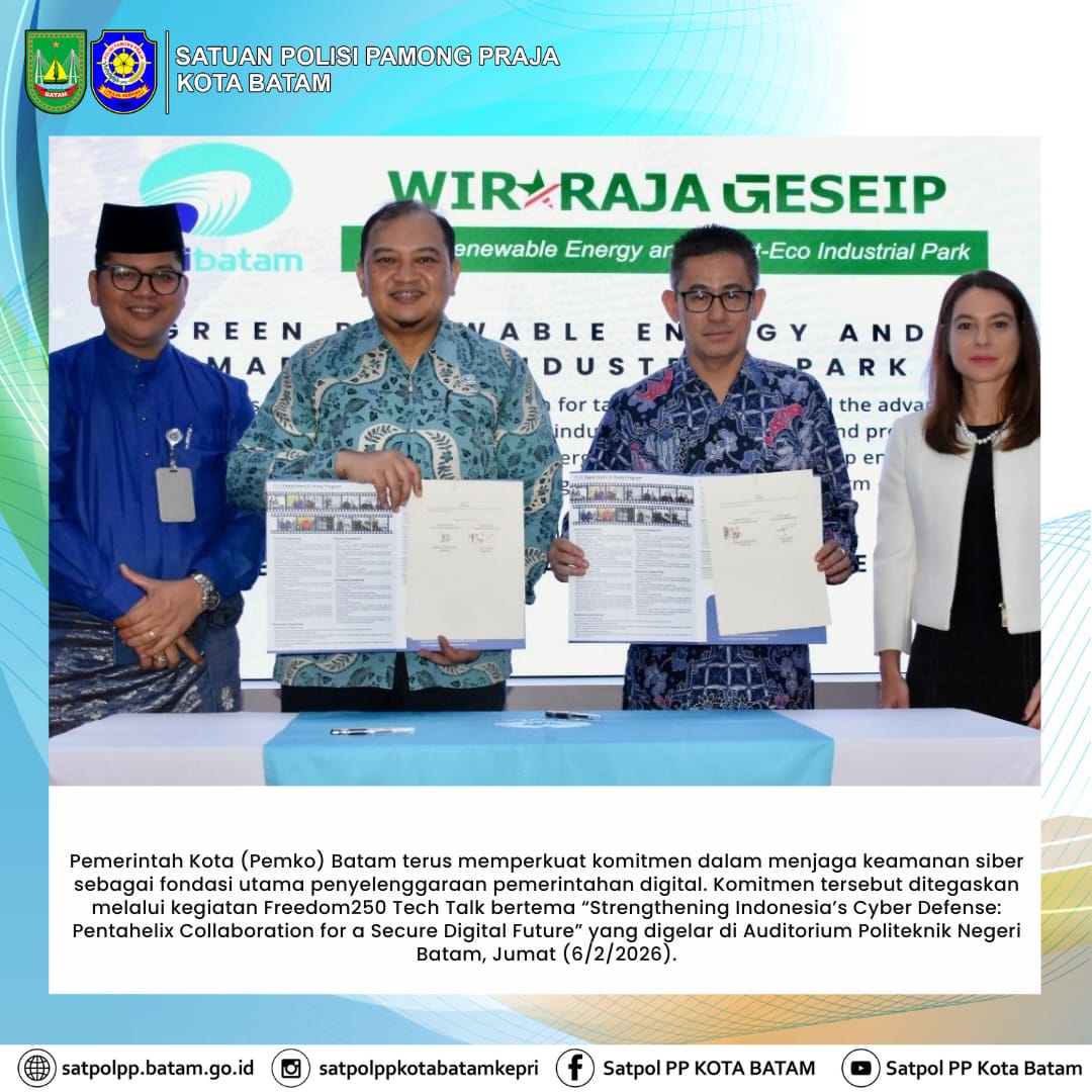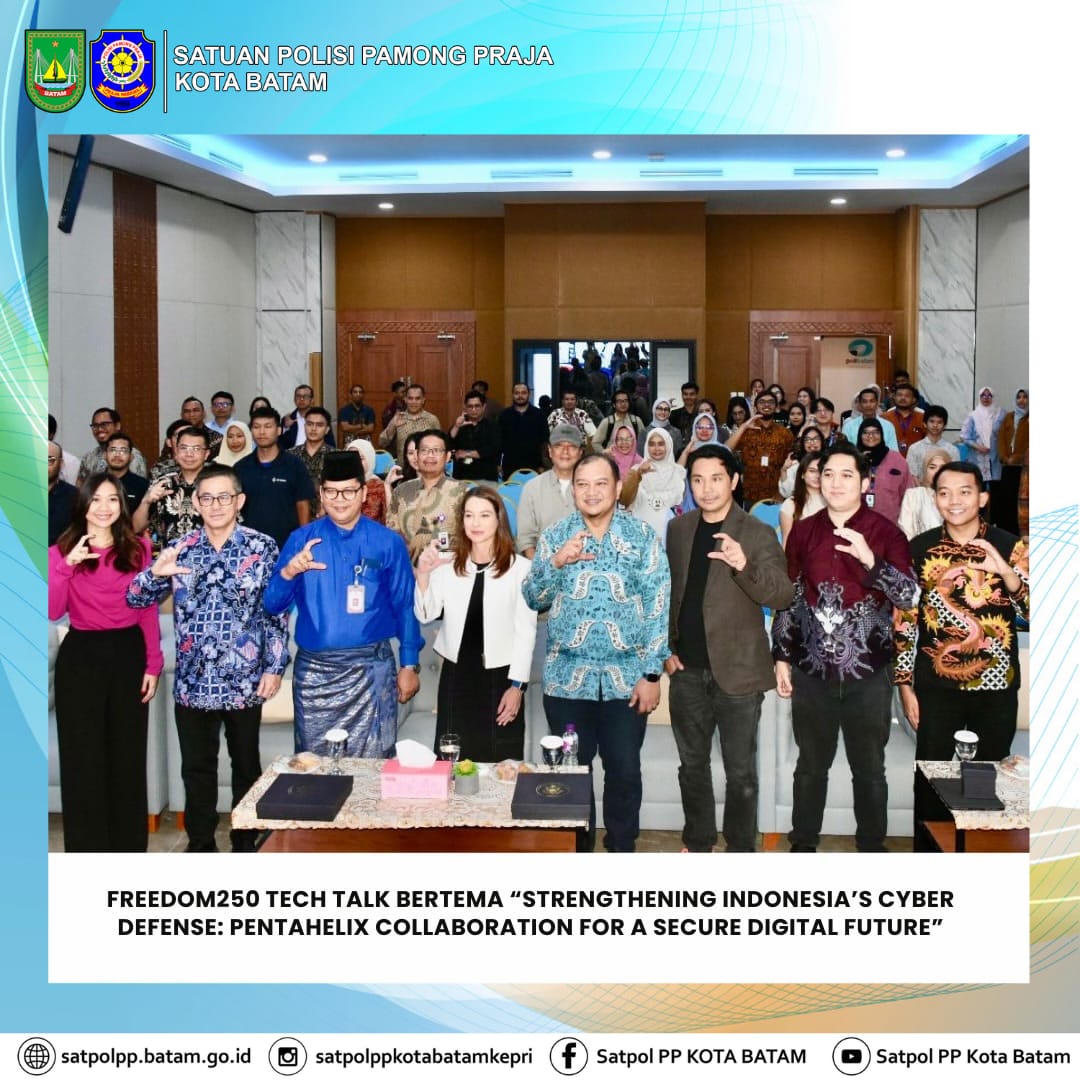 Pemerintah Kota (Pemko) Batam terus memperkuat komitmen dalam menjaga keamanan siber sebagai fondasi utama penyelenggaraan pemerintahan digital. Komitmen tersebut ditegaskan melalui kegiatan Freedom250 Tech Talk bertema “Strengthening Indonesia’s Cyber Defense: Pentahelix Collaboration for a Secure Digital Future” yang digelar di Auditorium Politeknik Negeri Batam, Jumat (6/2/2026).