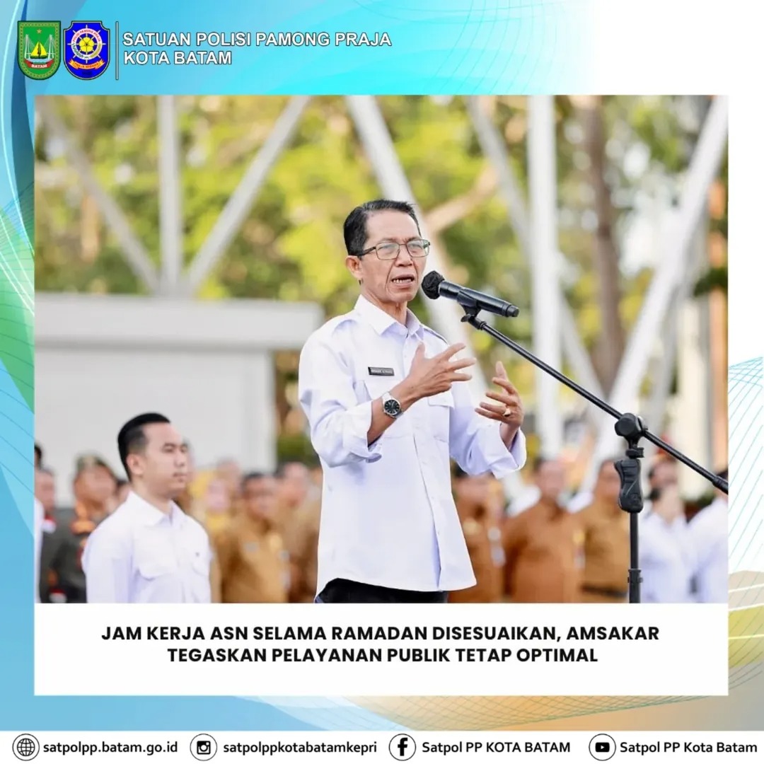 Pemerintah Kota (Pemko) Batam menetapkan penyesuaian jam kerja aparatur sipil negara (ASN) selama Bulan Suci Ramadan 1447 Hijriah/2026 Masehi. Kebijakan tersebut diberlakukan untuk menjaga keseimbangan antara kelancaran pelayanan publik dan produktivitas pegawai selama menjalankan ibadah puasa.