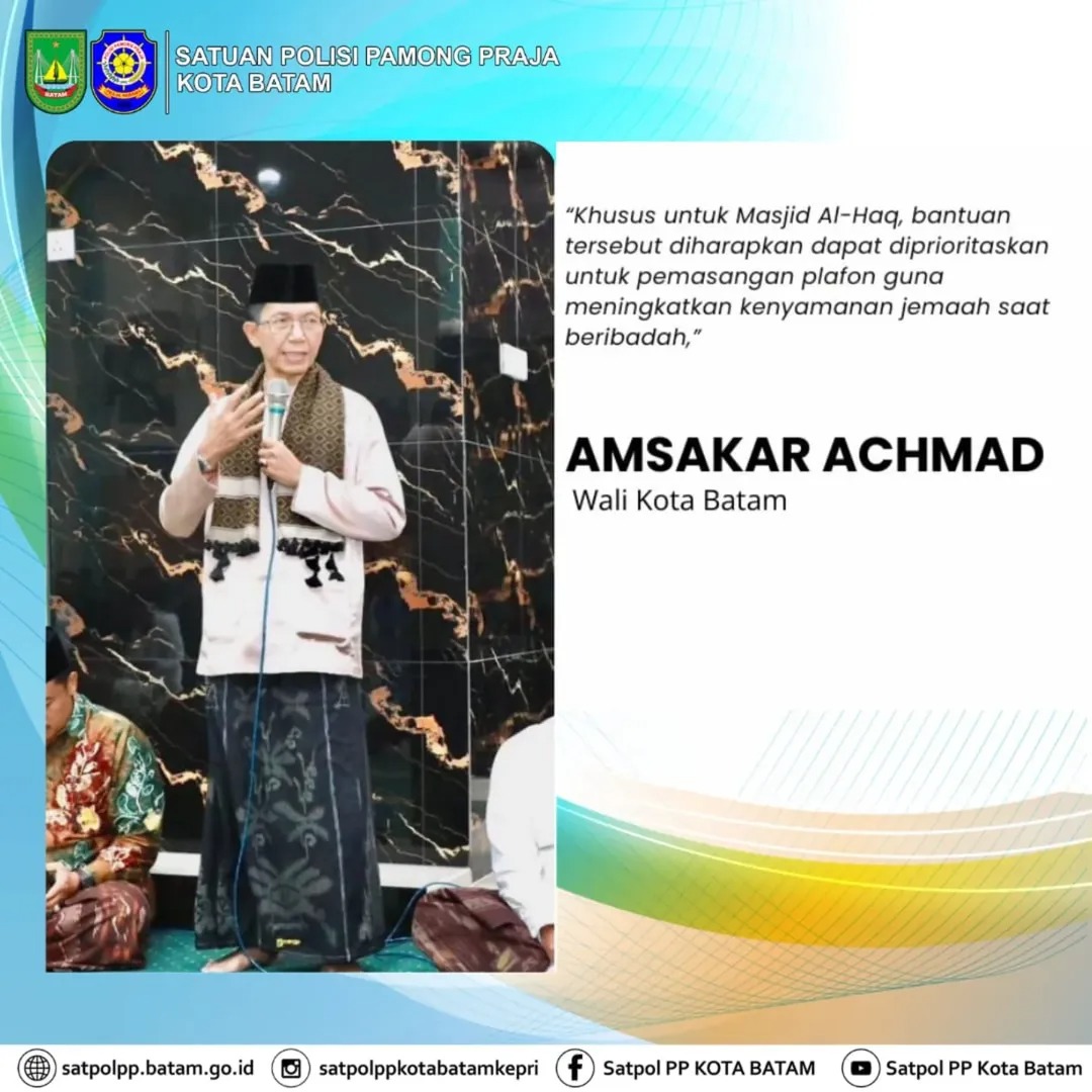 “Khusus untuk Masjid Al-Haq, bantuan tersebut diharapkan dapat diprioritaskan untuk pemasangan plafon guna meningkatkan kenyamanan jemaah saat beribadah,” pesan Amsakar.