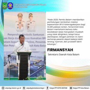 “Pada 2026, Pemko Batam memberikan perlindungan tambahan melalui kepesertaan BPJS Ketenagakerjaan bagi 10.285 pekerja rentan. Pemerintah Kota Batam memahami bahwa risiko kecelakaan kerja merupakan musibah yang tidak diinginkan, tetapi harus diantisipasi. Dengan jaminan ini, kami berharap peserta dapat bekerja lebih tenang, nyaman, dan produktif demi keluarga,” ujarnya.